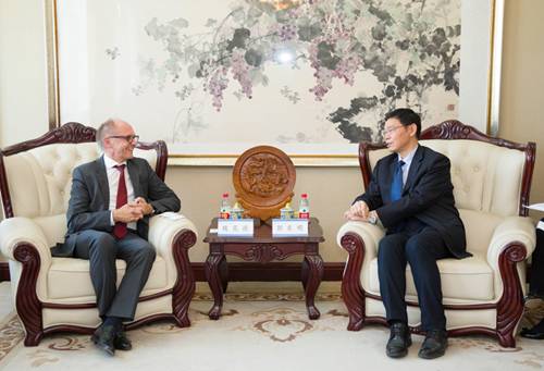 签约仪式前,郭东明校长在主楼312会议室会见华晨宝马汽车有限公司总裁及首席执行官魏岚德博士一行。贾振元副校长,校研究生院、运载工程与力学学部相关负责人陪同会见。