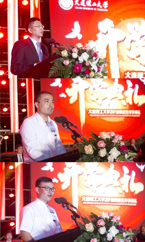 莱斯特国际学院院长占敬敬教授代表全体教师发言,希望同学们志存高远,树立远大理想,脚踏实地;丰富自己的知识结构;不惧挫折挑战,追求卓越,超越自我。表示作为大工教师将竭尽所能帮助同学们实现梦想,不辜负社会的期望,不辜负家长们的信任。机械工程学院2015级博士研究生闫帅与大家分享了自己的科研感悟和经历,希望新生立志坚守,以拼搏成为一名卓越的大工人。建设工程学部2018级新生杨志衡表示一定会按照习近平总书记对青年人的要求,肩负起时代赋予的使命,践行红色基因,实现自我价值。随后,2018级新生代表手捧鲜花向主席台就坐的校领导和教师送上祝福和问候。老师们为新生代表佩戴校徽,欢迎他们加入大工。