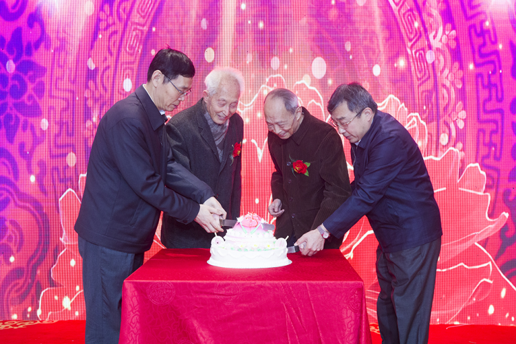 祝寿大会上,王寒松书记、郭东明校长与90岁高龄的王众托院士、95岁高龄的周茂青教授同切生日蛋糕。学校领导为老寿星们赠送蛋糕。