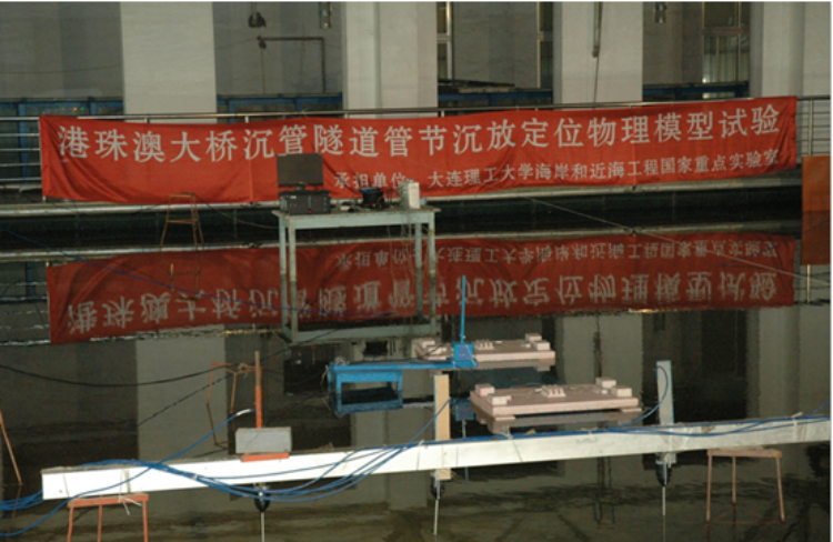 “港珠澳大桥海底沉管隧道是该工程中技术最为复杂的组成部分之一。在沉管沉放中,管节和浮驳将由等待时的整体变为双浮体,整个沉放系统的运动形态及响应、系泊缆绳及绞索受力均十分复杂。而能否有效控制沉放系统是沉管沉放定位成败的关键环节。把握外海动力环境条件下的系泊载荷、缆索受力、系统运动响应的变化规律,对于岛隧工程的顺利建设具有重要意义,本次实验研究是必要的。模型设计合理,试验方法正确、过程规范,资料详实、结果可信”。