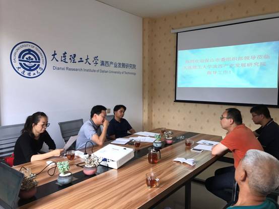 8月29日下午,保山市委组织部副部长周耀泉、人才科科长郑显洪、大学生村官管理科科长张君梅一行到大连理工大学滇西产业发展研究院调研指导工作。研究院办公室主任张涛、财务主任李生尧、办公室主任助理张建娟、科技服务中心主任助理张自飞陪同调研。