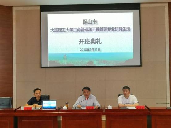9月11日,历经筹划组织、报名考试一年之久的保山市大连理工大学工商管理和工程管理专业学位硕士研究生班正式开班了,开班典礼在保山市委党校阶梯报告厅举行。中共保山市委常委、组织部部长杨光银,中共保山市委组织部干部教育培训科科长张君梅,大连理工大学管理与经济学部副部长宋金波教授,大连理工大学挂职龙陵县副县长、大连理工大学滇西产业发展研究院办公室主任张涛出席开班仪式。仪式由保山市委党校党委副书记、纪委书记刘国海主持。