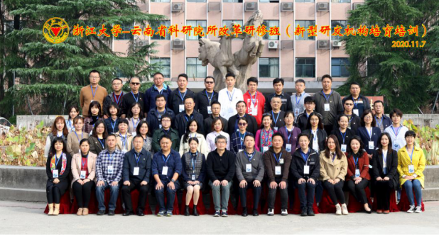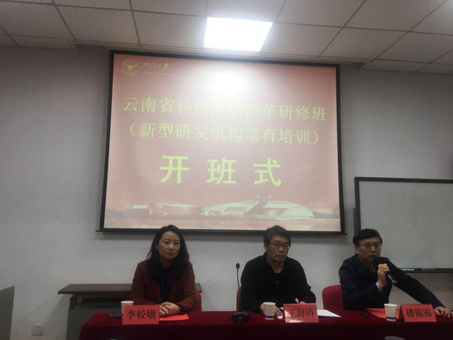 11月7日,云南省科技厅举办的科研院所改革研修(新型研发机构培育培训)在浙江大学开班。云南省科技厅法规处处长王海涛、云南省科技厅法规处副处长李姣娥、浙江大学继续教育学院院长楼锡锦出席了开班式。来自云南省省属部门科研机构、转制科研院所、省属重点院所、政产学研高校研究院以及新型研发机构的54位院所代表参加本期培训,我院派出办公室张建娟为代表参加了此次培训。