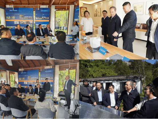 贾振元校长在龙陵县邦腊掌详细了解了学校协助度假区申报国家AAAA景区的进展情况,并与云南云投集团副总裁铁瑞林和龙陵县委书记牛永东共同为学校招商引资建设的度假区标志性景点“大连理工大学现代旅游康养科技小院”揭牌。