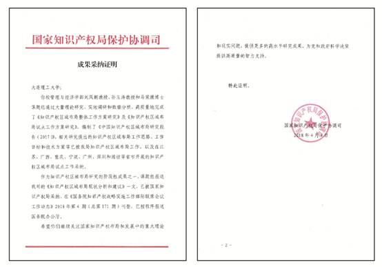 大工管经学部研究成果被国家知识产权局采纳上报国务院